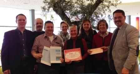 Das Bild zeigt von rechts nach links: Vors. Michael Schaller, Marianne Rabb-Ohlenforst, Petra Wolf, sowie die Vorstandsmitglieder, Karin Diehl, Susanne Zöllner-Sowka, Frank Bellmann, Kai Zengerling, Norman Schneider