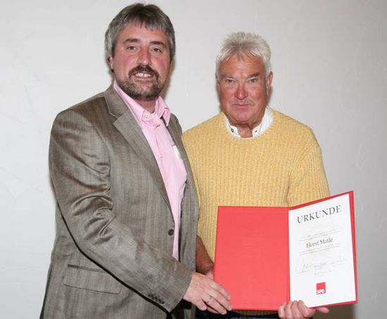 Horst Matle (SPD Ortsverein Spabrücken) wurde bei der SPD-Jahreshauptversammlung des Ortsvereins Spabrücken vom SPD-Kreisverbands-Vorsitzenden Hans-Dirk Nies für seine 40-jährige Mitgliedschaft in der SPD geehrt.